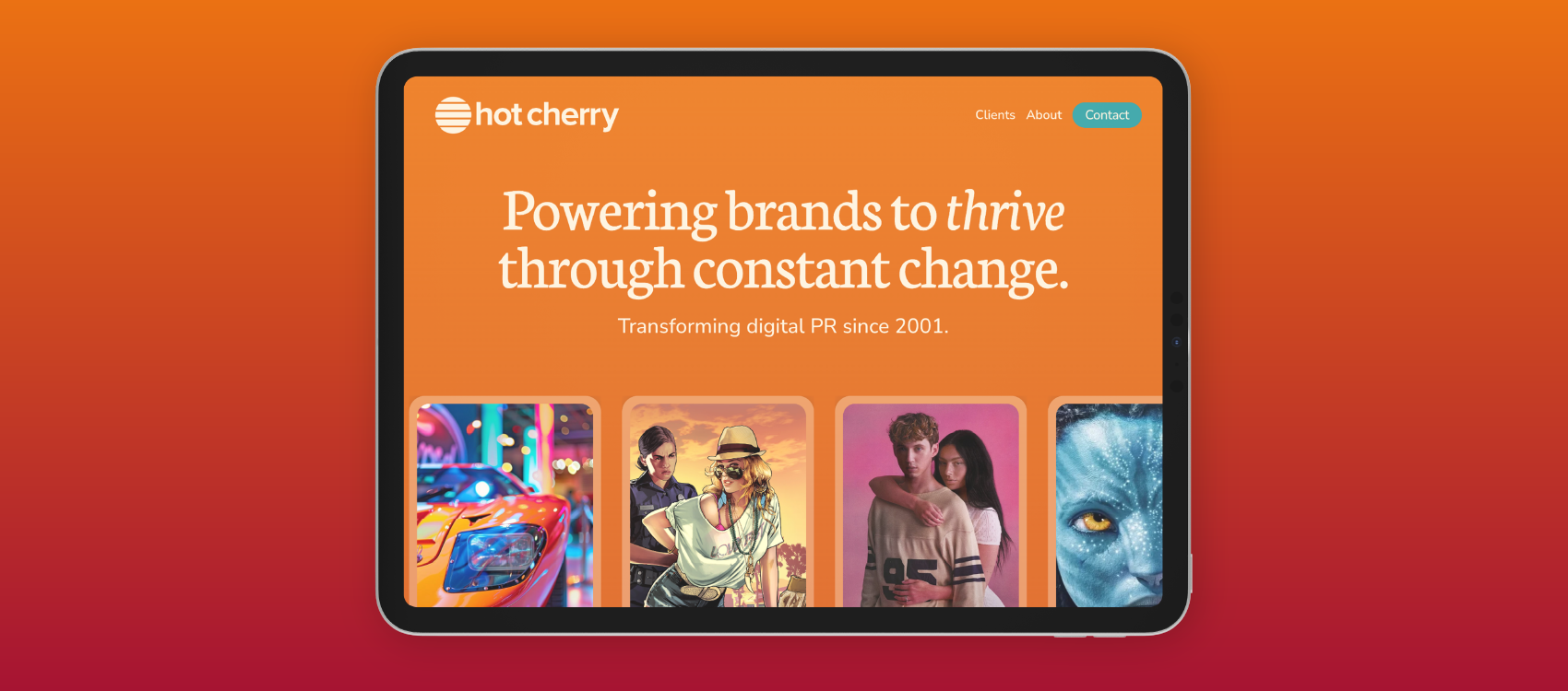 I worked with Hot Cherry on creating a brand new website, which led to a full rebrand of the organisation. They wanted to push the boundaries and see a visual representation of how they see themselves as a business. Bold, forward-thinking and boundary pushing.